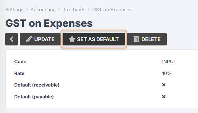 Click into the tax type from Settings > Accounting > Tax Types, then click Set as Default: