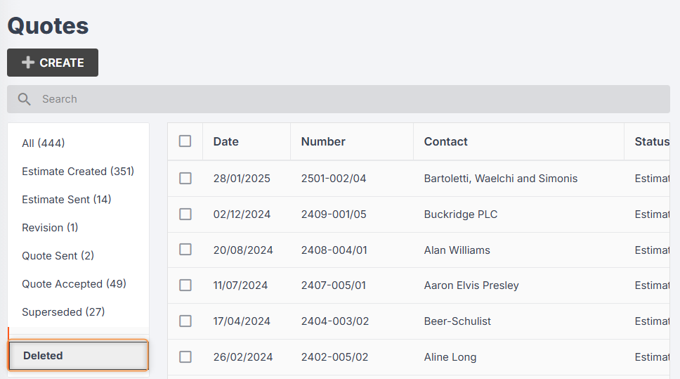 - Use the multi-select menu on the left to filter your quotes by one or more quote statuses.