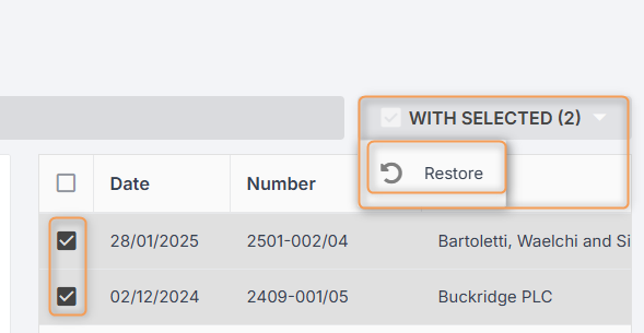 - Restore a deleted quote by selecting it and clicking With Selected > Restore: