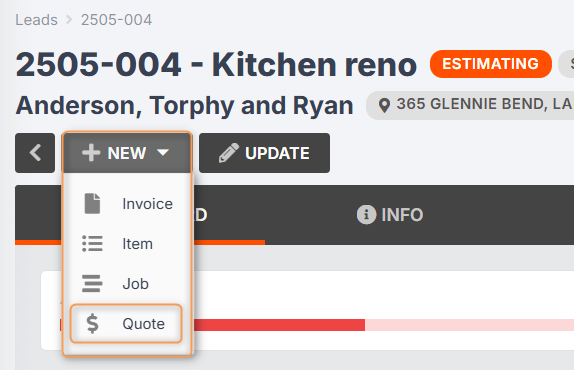 Note: if your lead has any items, these will automatically carry over to the quote.