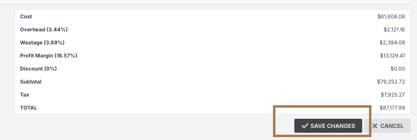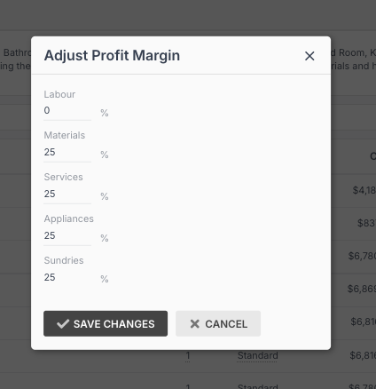 If you wish to override further inside a specific quote, we recommend clicking on the profit margin percentage at the top, which will holistically set the profit for the entire quote.