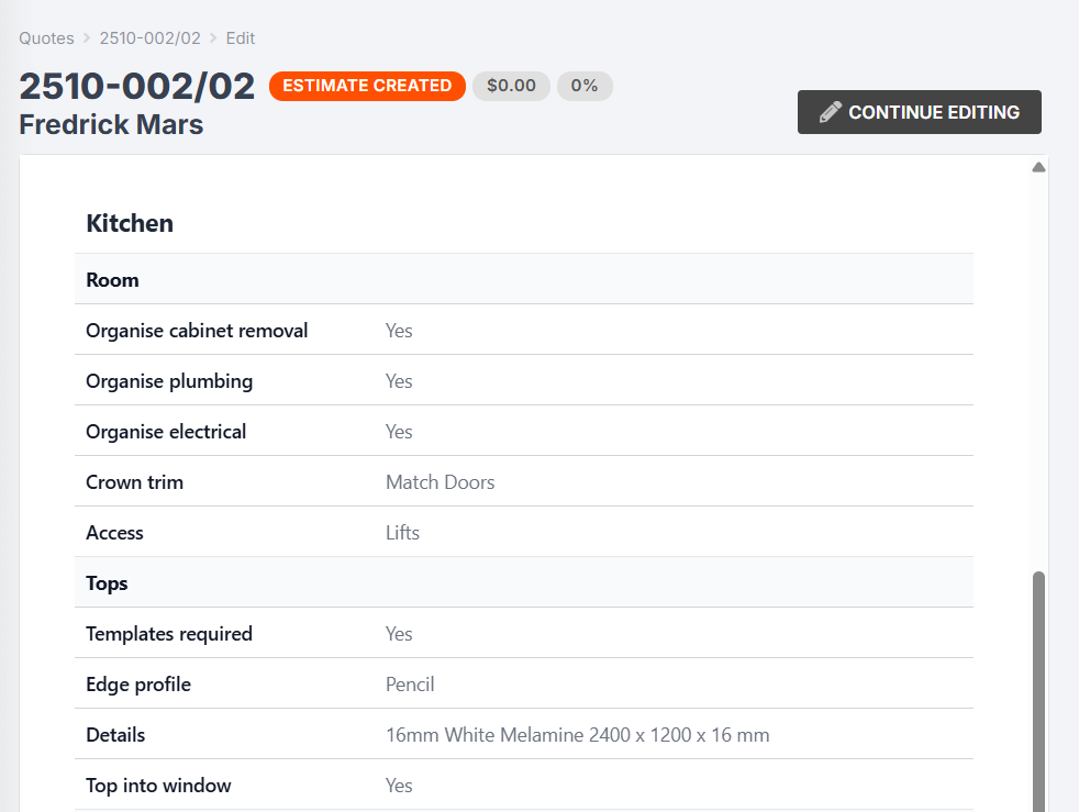 This will redirect you to a summary of the operations, materials, services, and costs/wastage/overhead/profit contained in the quote, so you can double-check the quote is correct. Read More