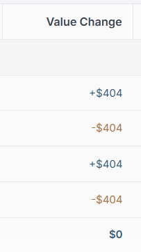 In the example shown above, the Value column shows $404, $0, $404, and $0 for each of the entries, then a total of $0: