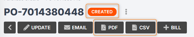 Your PO has now been created, and will remain in "Created" status until you send it to your supplier.