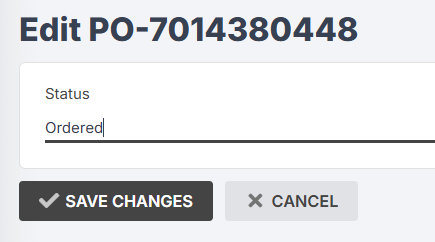 If you do this, you will need to manually change your PO status to Ordered. Do this by clicking the orange status tag at the top, and select the new status from the drop-down.