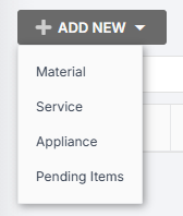 Click Add New to add a Material, Service, Appliance, or Pending Items: