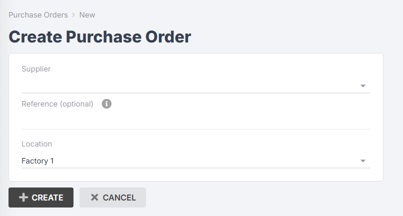 Select your supplier and location, add a reference (optional) and click Create again: