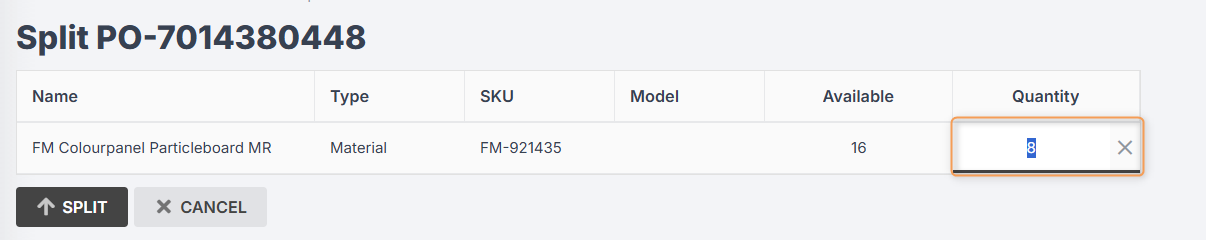 Click on the Quantity column to edit the quantity of items you want to allocate to the new partial PO. (The remainder will stay allocated to the originating PO.)