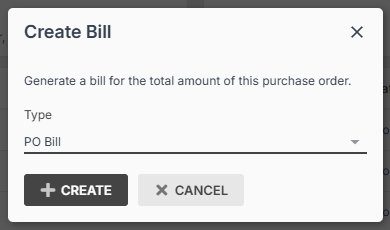 Select PO Bill from the drop-down, then click Create: