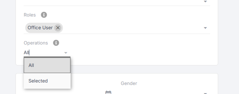 When creating or updating a staff member, you can choose whether to restrict that staff member to all or selected operations: