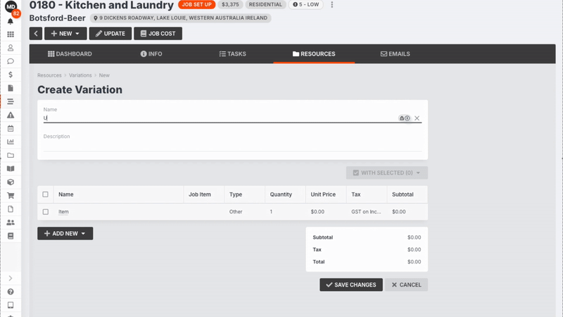 Whether your customer upgrades to stone benchtops or scales back the scope to meet their budget, Simple Job Variations make it seamless to adjust and report on changes to your job’s estimated value after quoting, keeping your cost reports and invoices true to the work being delivered!